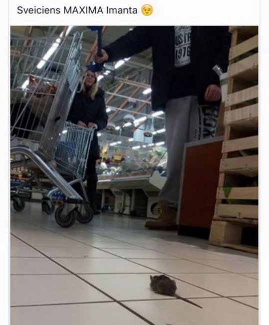 Pircēji “Maximas” zālē “pieķer” peli; stāsta par prusakiem un tārpiem. Sociālajos tīklos sācis ceļot kāds attēls, kas ir gan skumjšs, gan vienlaicīgi arī jautrs.