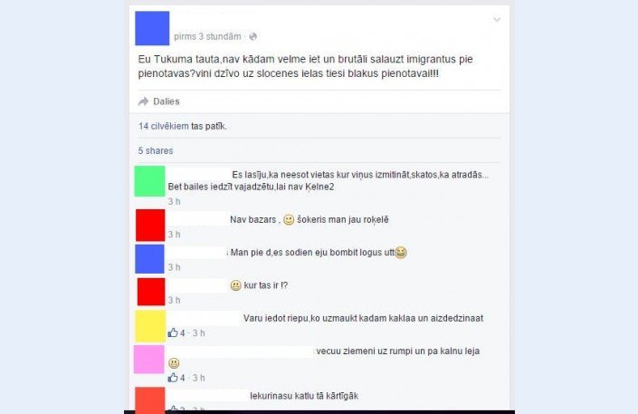 Kāds jaunietis savā Facebook profilā pavisam nesen bija ievietojis aicinājumu “brutāli salauzt imigrantus”, kas it kā tiek izmitināti Tukumā. Komentāros citi sociālā tīkla lietotāji nekautrējoties tam piebalsoja.
