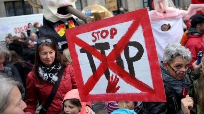 Ārvalstu informācijas aģentūras ziņo, ka Vācijas ziemeļu pilsētā Hanoverē notikuši plaši protesti pret Eiropas Savienības (ES) un ASV brīvās tirdzniecības līgumu jeb Transatlantisko tirdzniecības un investīciju partnerību (Transatlantic Trade and Investment Partnership, TTIP). Pēc policijas aplēsēm protestos piedalījušies vismaz 35 000 cilvēku.