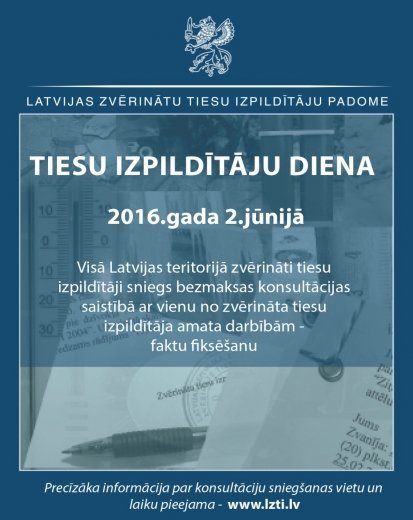 2.6. 2016 plkst. 10:00-17:00 Latvijā Tiesu izpildītāju dienā sniegs bezmaksas konsultācijas