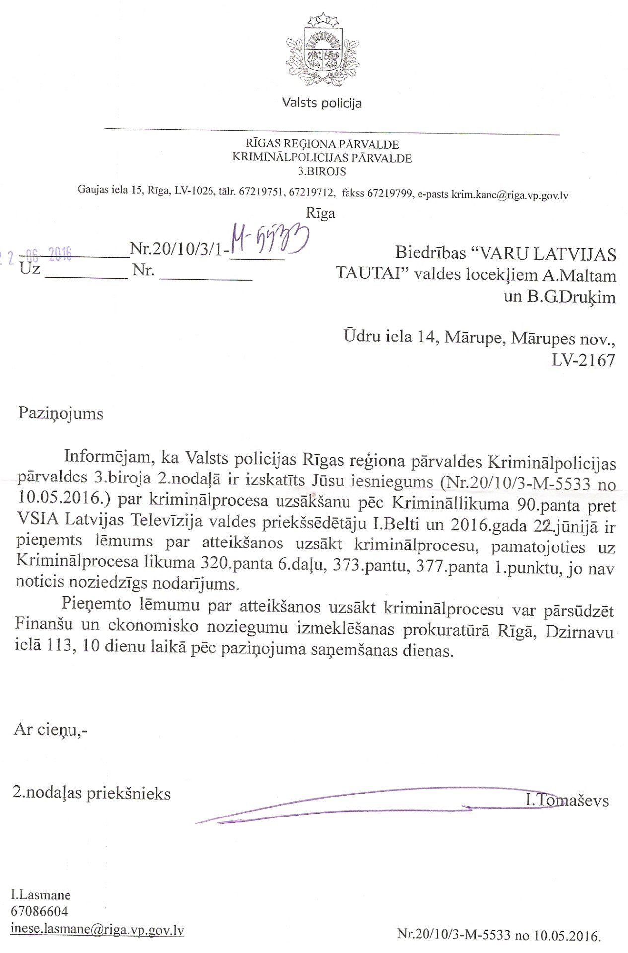 Policija atteikusies uzsākt kriminālprocesu par kavēšanu realizēt parakstu vākšanu tautas nobalsošanas ierosināšanai