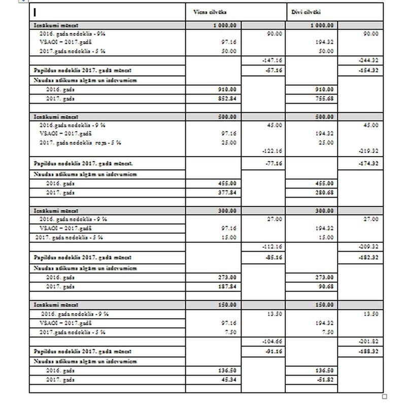 Turpmākie aprēķini veikti vairāk vai mazāk reāliem uzņēmumiem ar reālu, nelielu mēneša ienākumu līmeni, kuros nodarbināts viens vai divi cilvēki:Tabula nr.2