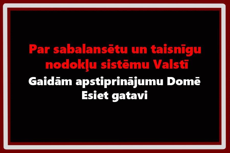 Par sabalansētu un taisnīgu nodokļu sistēmu valstī. Uzrunāt prezidentu atgriezt likuma grozījumus Saeimā.