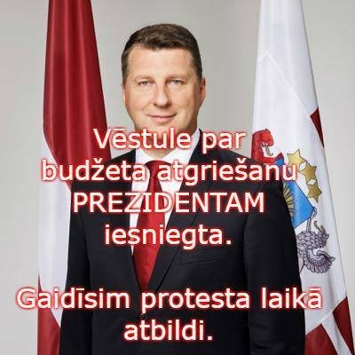 Iepriekšējā dienā tika iesniegta vēstule Prezidentam ar aicnājumu atdot budžeta likumus otreizējai caurskatīšanai. Prezidentam iesniegta tautas parakstīta vēstule ar aicinājumu atdot otreizējai caurskatīšanai neizguļoties pieņemtu budžeta likumu paketi.