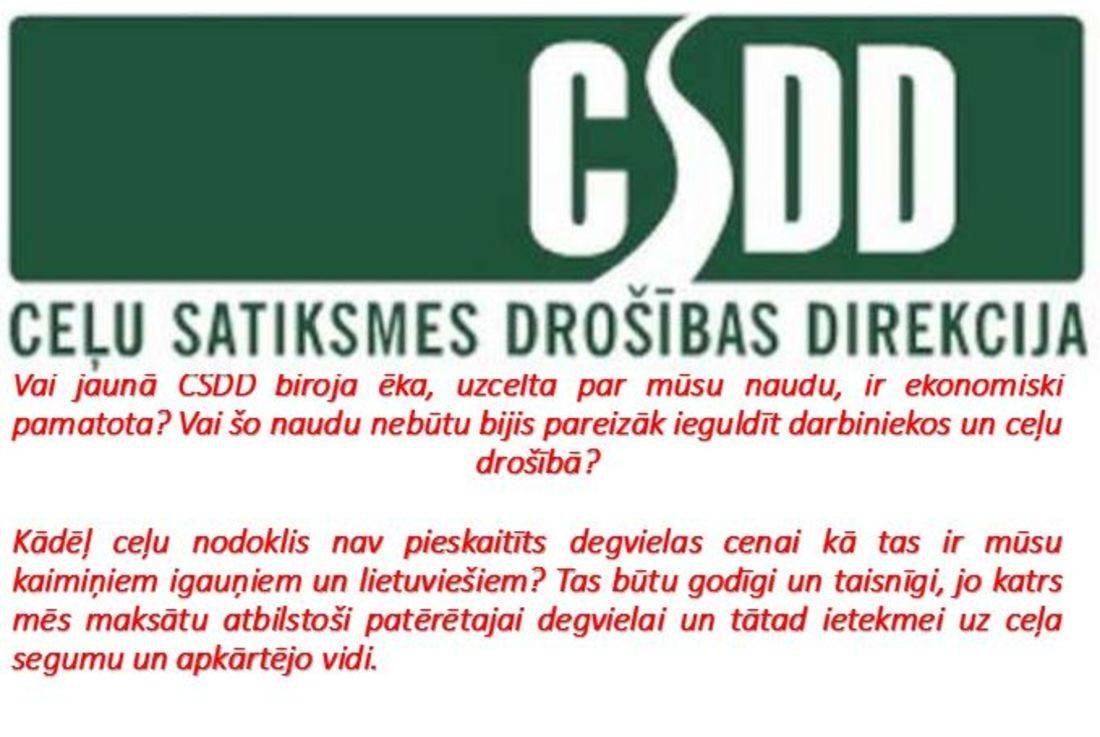 «Vai jaunā CSDD biroja ēka, uzcelta par mūsu naudu, ir ekonomiski pamatota? Vai šo naudu nebūtu bijis pareizāk ieguldīt darbiniekos un ceļu drošībā?»
