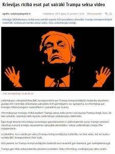 “Krievijas izlūkdienestu rīcībā esot vairāki topošo ASV prezidentu Donaldu Trampu kompromitējoši materiāli, tostarp arī vairāki seksa video, ziņo Lielbritānijas mediji.