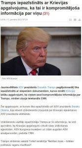 “Jaunievēlētais ASV prezidents Donalds Tramps pagājušonedēļ tika iepazīstināts ar slepeniem dokumentiem, kuros minēti Krievijas izlūku apgalvojumi, ka viņiem esot kompromitējoša informācija par Trampu, otrdien ziņoja telekanāls CNN.