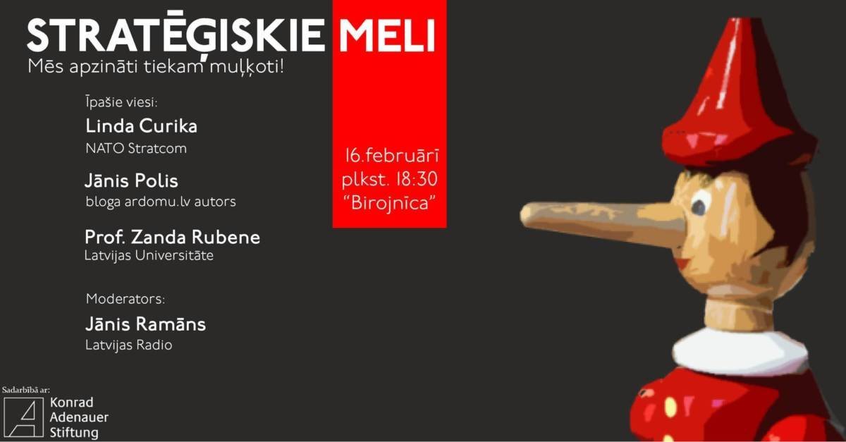 16.2.2017 plkst. 18:30 Birojnīcā diskusija par stratēģiskiem meliem politikā un medijos