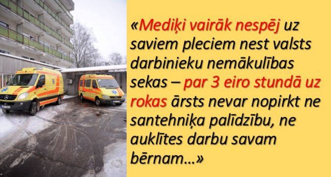 Patiesības mirklis ir klāt – mediķi vairāk nespēj uz saviem pleciem nest valsts darbinieku nemākulības sekas – par 3 eiro stundā uz rokas ārsts nevar nopirkt ne santehniķa palīdzību, ne auklītes darbu savam bērnam.