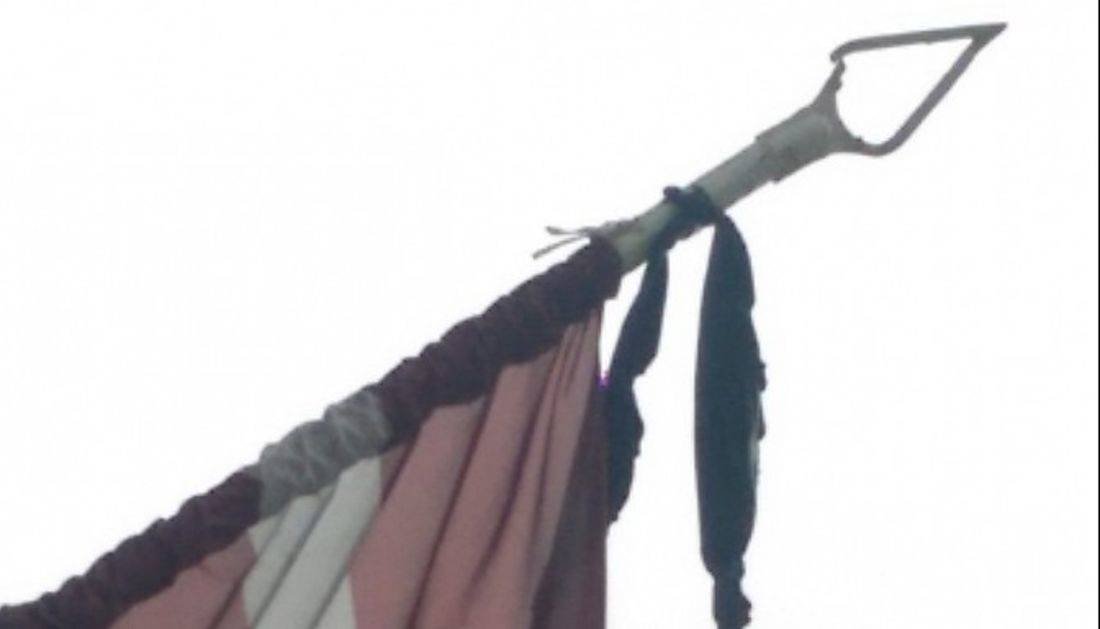 Sēru lentes vietā pie valsts karoga – mistkastes maiss!