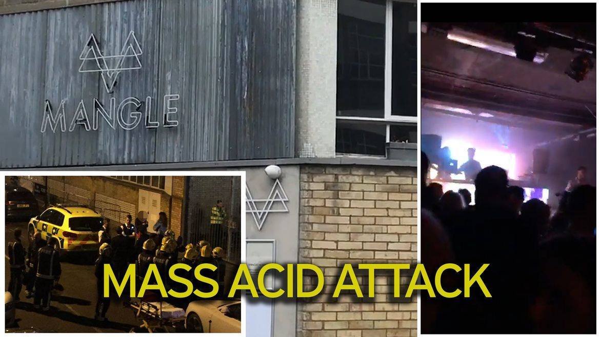 Londonas ugunsdzēsības dienesta preses pārstāvis paziņoja, ka klubā cilvēku pūlī iemesta “nezināma kodīga viela”, no kuras cietuši 12 cilvēki, kas nogādāti slimnīcā.