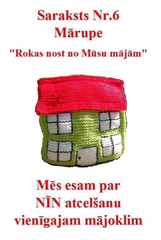 Mēs esam vienīgais saraksts Lavijā ar nosaukumu “Rokas nost no mūsu mājām” atrodas Mārupē. Ja ļaudis balsos par to Mārupes pašvaldības vēlēšanās 3.6.2017, tad solījums “Atcelt NĪN vienīgajam mājoklim” tikšot izpildīts.