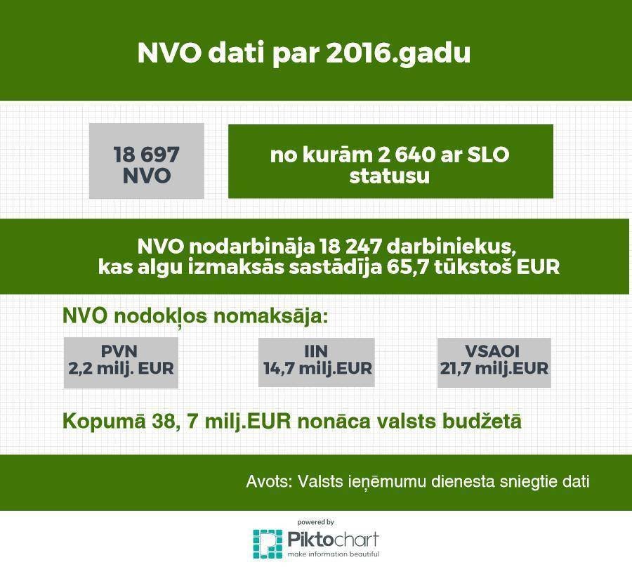 NVO pārstāvji arī sagatavojuši un nosūtījumi Ministru prezidentam un koalīcijas frakcijām savus priekšlikumus izmaiņām nodokļu politikas pamatnostādnēs, paredzot, saglabāt tiesības uzņēmumiem samazināt maksājamo uzņēmumu ienākuma nodokļa apjomu, ja uzņēmums ziedo sabiedriskā labuma organizācijām.