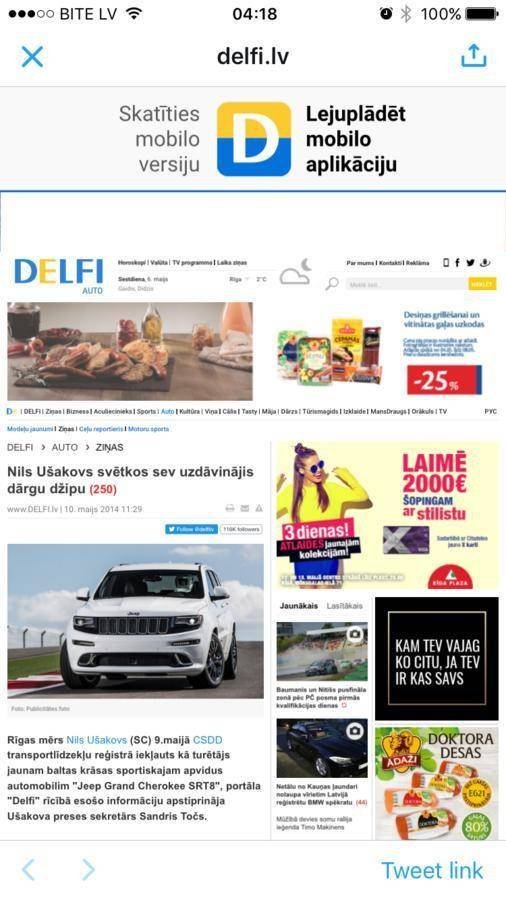 „Rīgā ielas tik nolaistas, ka mēram nācās jaunu džipu iepirkt,” – šādi TV3 ziņu producente, kas it kā rūpējoties par objektīvu un pārbaudītu ziņu publicēšanu, 5. maijā Twitter bija komentējusi šīs pašas televīzijas žurnālista Jāņa Eglīša ierakstu ar norādi uz publikāciju „Nils Ušakovs svētkos sev uzdāvinājis dārgu džipu”.