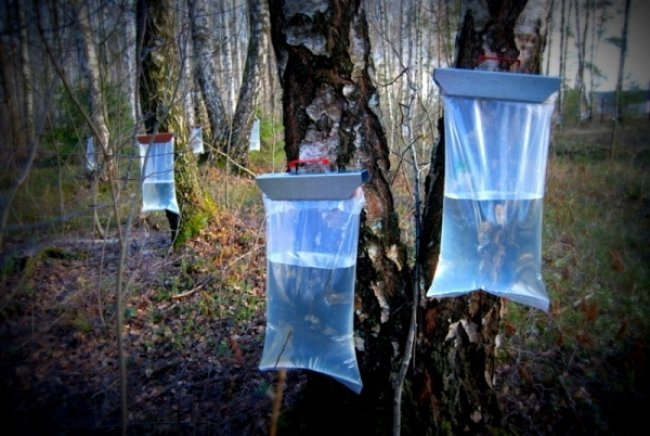 Plastmasas trauki bērzu sulas tecināšanai.Sekojot gudro galvu priekšnieka Vēkoņa loģikai, tas ir vienkāršākais kandžas dzīšanas paņēmiens.