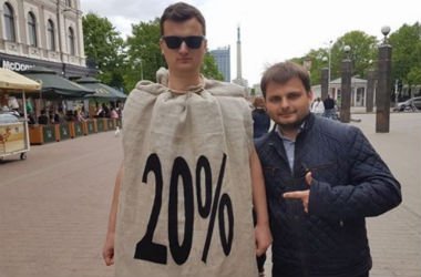 Un ko par darbavietu slēpšanu no vēlētājiem domā saraksta līderis Ķirsis, kura palīgs reklamē Liepiņu? Attēlā no Liepiņa Facebook lentas – Liepiņš ģērbts čekas maisā savā priekšvēlēšanu kampaņā. https://www.facebook.com/inteligentais