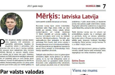 Pēdējās dienās plašāku ievērību un arī atsevišķu Vienotības pārstāvju iebildumus izsaucis Saeimas deputāta Edvīna Šnores vēstījums „Mērķis: latviska Latvija”, kas publicēts Nacionālās apvienības propagandas izdevumā Nacionālās ziņas. Ņemot vērā lasītāju interesi, publicējam šo rakstu.
