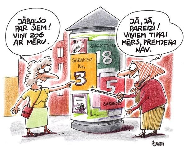 Uz šī fona tīkla aktīvisti silda veco zupu. Kāds aicina vēlēšanās izbalsot oligarhus. Interesanti, cik tādā Pārgaujas vai Mazsalacas novada domē ir oligarhu? Vēl kāds biedē – ja nenobalsosi par pareizajiem Rīgā, drīz šajā pilsētā katru lēmumu saskaņos Maskavā. Kāds kliedz par miljonu zagļiem un aicina balsot par tiem, kas reiz būvēja pasaulē dārgākos tiltus. Vēl kāds sola latvisku Latviju. Būtu reiz labāk solījis ielas mazgāt, lai putekļi negriežas pa gaisu tā, ka šodien mazgāts logs jau rīt ir tikpat netīrs, cik bijis.