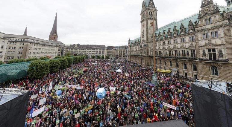 Tuvojoties 7. un 8.jūlijā Hamburgā paredzētajai G20 valstu līderu sanāksmei, uz kuru gaida ierodamies ASV prezidentu Donaldu Trampu, svētdien, 2.7.2017, šai pilsētā norisinās protesta demonstrācijas, kurās saskaņā ar policijas aplēsēm piedalās aptuveni 10 000 cilvēku, kamēr rīkotāji apgalvo, ka dalībnieku skaits ir lielāks.