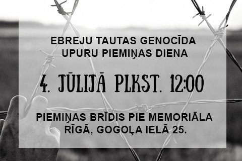 4.7.2017. plkst. 12 Rīgā, Gogoļa ielā 25, notiks Ebreju tautas genocīda upuriem veltīts piemiņas brīdis, bet plkst. 13 Biķerniekos notiks ziedu nolikšanas ceremonija