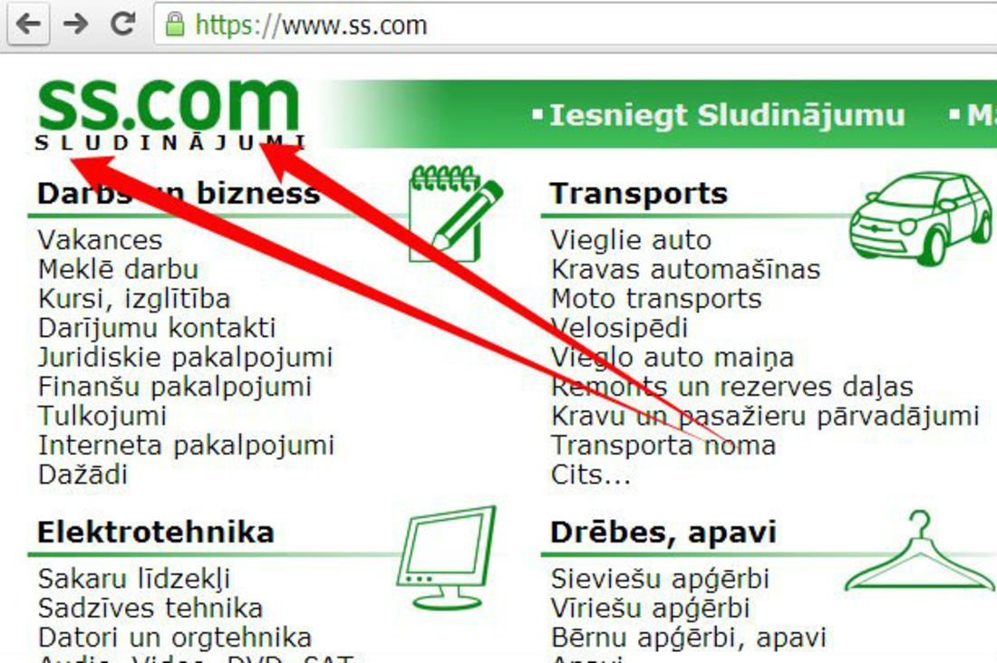 Adrešu logā ievadot veco adresi “ss.lv”, kas vēl šodien veda uz vietni “ss.lv”, pašlaik ved uz vietni “ss.com”. Tāpat no “ss.lv” uz “ss.com” mainījies vietnes sākumlapas kreisajā augšējā stūrī redzamais vietnes logotips.