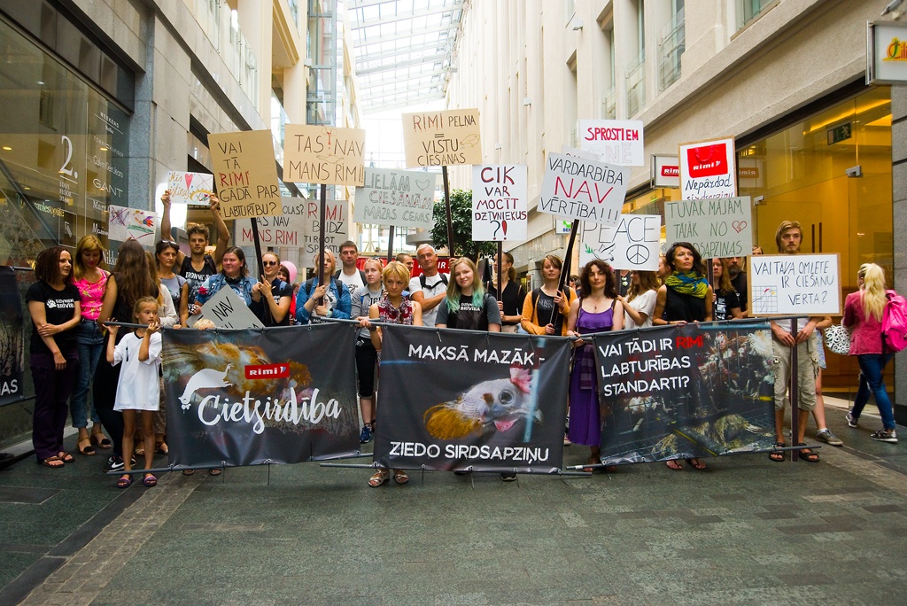 Jau ziņots, ka “Dzīvnieku brīvība” plāno rīkot divus piketus pie mazumtirdzniecības tīkla “Rimi” veikaliem Rīgas centrā, lai aicinātu tirgotāju apņemties līdz 2025.gadam pilnībā atteikties no sprostos turētu vistu olu tirdzniecības. “Dzīvnieku brīvības” valdes locekle Katrīna Krīgere uzsvēra, ka dējējvistu turēšana sprostos ir viena no cietsirdīgākajām lopkopības praksēm, kas nav savietojama ar dzīvnieku labturību. Tā radot milzu ciešanas miljoniem putnu, liedzot tiem jebkādas iespējas paust savu dabisko uzvedību.