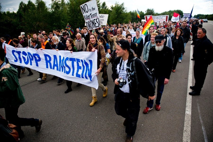 21.8.2017. Vācijā mūziķi bloķē gaisa spēku bāzi, protestējot pret Vācijas Bundesvēra militārām misijām ārzemēs