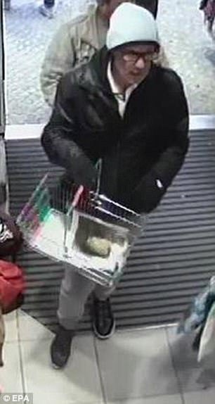 Policijas rīcībā nonāca arī novērošanas kameru ieraksts, kurā redzams kāds vīrietis, kas kādā Frīdrihshāfenes lielveikalā plauktos novieto pārtikas produktus.