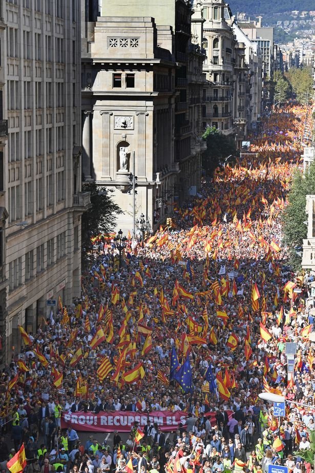 21.10.2017. Barselonas ielās iziet ap 450 000 neatkarības atbalstītāju protestā pret Spānijas valdība uzsākto Katalonijas autonomijas apturēšanas procesu. Katalāņu separātisti protestējot izņem no bankām naudu
