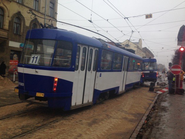 Kā ziņots, tehnisku iemeslu dēļ šo pēcpusdien Rīgā, pie Vidzemes tirgus, no sliedēm noskrēja 11.tramvajs, kā rezultātā tika kavēta tramvaju maršruta Stacijas laukums-Mežaparks kustība.