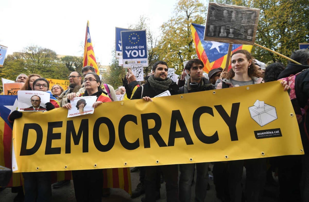 No amata atstādinātais Katalonijas premjerministrs Karless Pudždemons, kurš pašreiz uzturas Briselē, demonstrācijā nepiedalījās, bet klāt bija vairāki citi atstādinātās Katalonijas valdības locekļi, kā arī vairāki Eiropas Parlamenta (EP) deputāti.