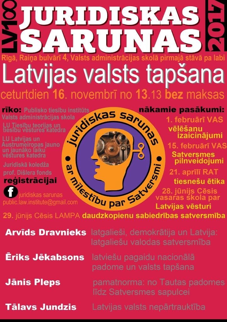 16.11.2017. plkst. 13:13 Valsts Administrācijas skolā notiek juridiskas sarunas par Latvijas vēsturi un nākotni