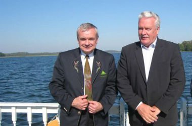 Attēlā – šīs norises acīmredzami “piesedzošais” un “nemanošais” Valsts meža dienesta direktors Andis Krēsliņš (no kreisās) kopā ar zemkopības ministru Jāni Dūklavu (foto – lvportals.lv).