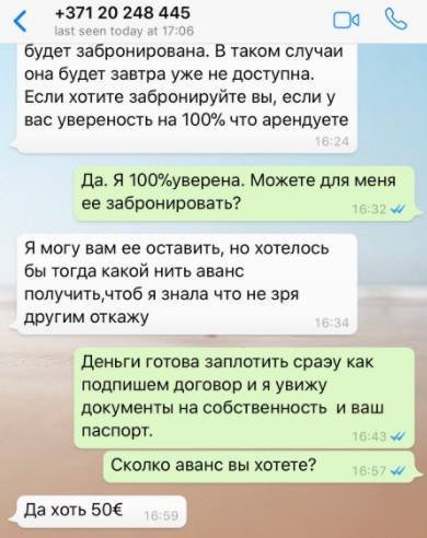 Acīmredzot kāds ir izdomājis savu ideju kā pelnīt naudu, likt sludinājumus par dzīvokli, stāstīt, ka ļoti daudzi ir pieteikušies, bet šo dzīvokli var rezervēt tieši mums, ja mēs samaksāsim avansu, bet pagaidām dzīvokli nevar ne apskatīt, ne izīrēt, jo īpašniece atrodoties ārzemēs….