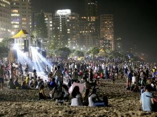 Sākoties nekontrolētām eksplozijām, policija devusi rīkojumu tūkstošiem cilvēku atstāt līdzās esošo pludmali, kuru apdraudējusi sprāgstošā pirotehnika.