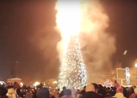 VIDEO: Krievijā Jaungada svinību laikā nodegusi 25 metrus gara egle