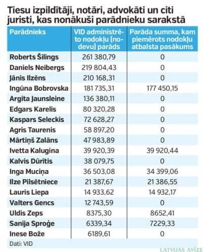…Info avots: http://www.leta.lv/news/latvia/05D9BC4A-C7FD-4EA4-95B7-1DABAB4D2DF4/ ; http://www.la.lv/foto-nodoklu-paradnieku-saraksta-ari-advokati/ un http://m.pietiek.com/raksti/nodoklu_paradnieku_saraksta__pravs_pulks_advokatu,_notaru_un_tiesu_izpilditaju