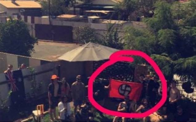 Sociālajos tīklos līdz ar saukli “Paliec balta, Austrālija” izplatīta fotogrāfija no, kā noprotams, balto pārākuma apziņas sludinātāju pasākuma, kurā redzams, ka viesi tur pašdarinātu nacistu karogu.