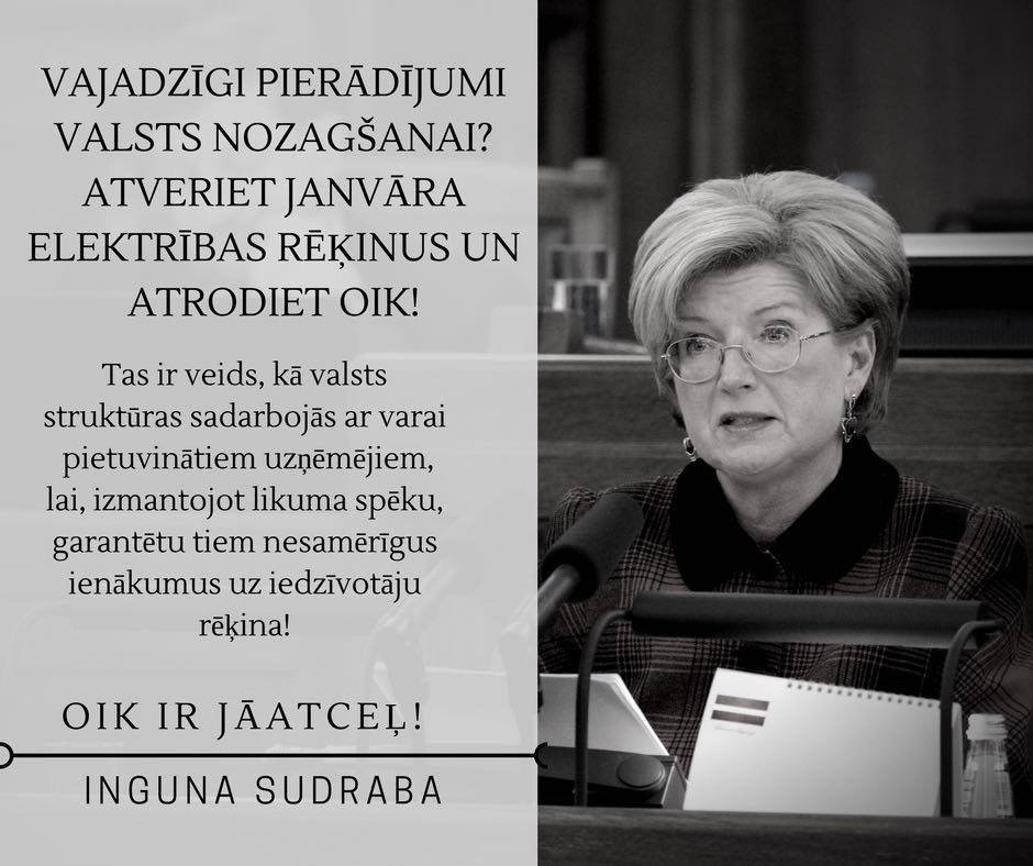 Viņa atzīmēja, ka elektroenerģijas rēķinus veido trīs daļas – elektroenerģijas maksa, sadales pakalpojumi un obligātā iepirkuma komponente (OIK). Šobrīd Valsts kontrole veic revīziju par sadales pakalpojumiem, taču, iespējams, saistībā ar elektroenerģijas sadārdzināšanos no šā gada Valsts kontrole varētu revidēt arī OIK sistēmu.