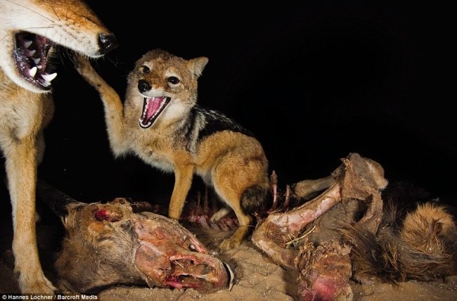 Šakāļi piesakās uz ābē-elvē gaļas gabaliem. Foto: Pinterest