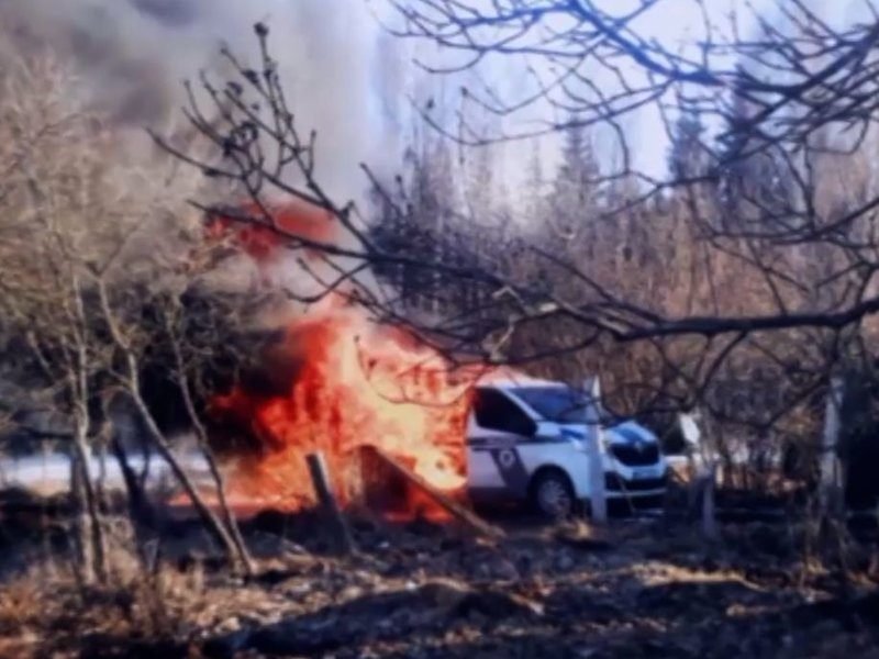 Policijas mikroautobuss Jaunjelgavas pusē aizdedzināts, no ģimenes izņemot bērnu