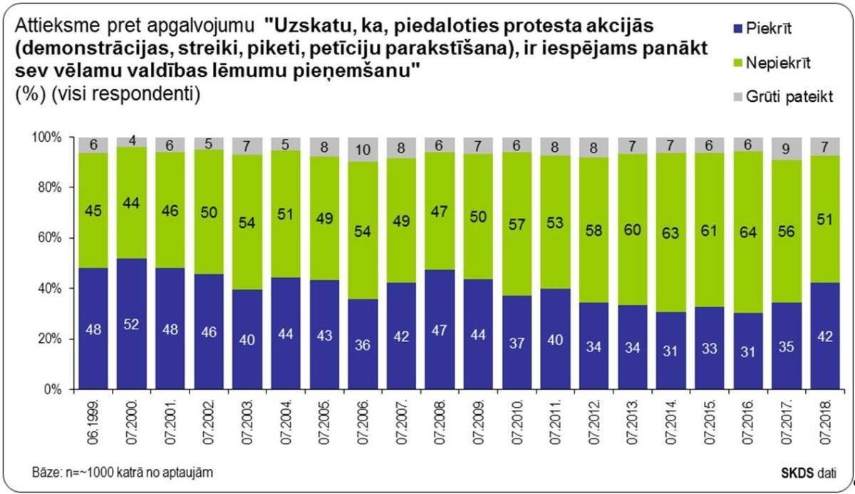 Šogad pieaugusi Latvijas iedzīvotāju ticība protesta akciju efektivitātei, ka ar to palīdzību valdību var piespiest rīkoties. Vai tas būtu tāpēc, ka pēdējā laikā ir bijušas diezgan daudz visādas mērogā ne pārāk lielas protesta akcijas? Man šīs izmaiņas nav īsti skaidras.
