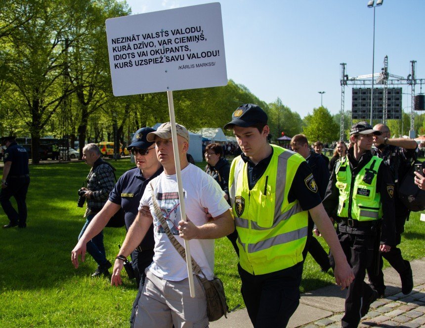 Uzvaras parkā aizturētais aktīvists Ainis Sproģis / NRA
