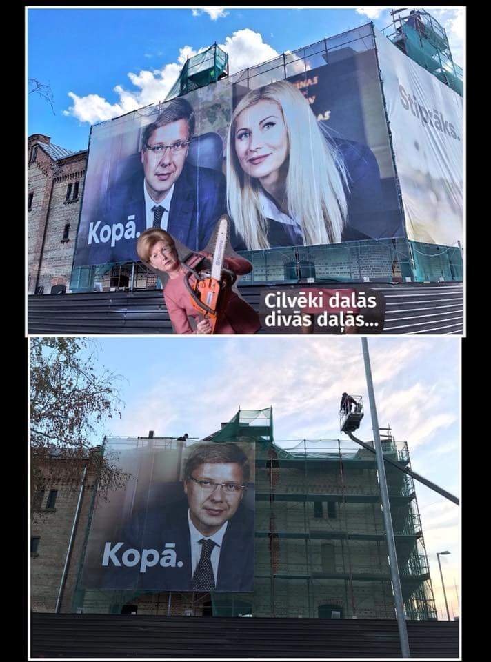NSL pēdējā nedēļā publiskojusi teju pusi no kopējā šīs partijas izplatīto reklāmu skaita. Par skaļāko pēdējās nedēļas reklāmu pārsteigumu parūpējusies Inguna Sudraba. Uz visai vienādo NSL reklāmu fona trīs reklāmas ar motorzāģi rokās un cilvēkiem, kas dalās divās daļās, saviļņoja Latvijas interneta vidi. Bez tā, ka reklāmas domātas latviešu valodā komunicējušajiem, tās citādi mērķētas netiek.