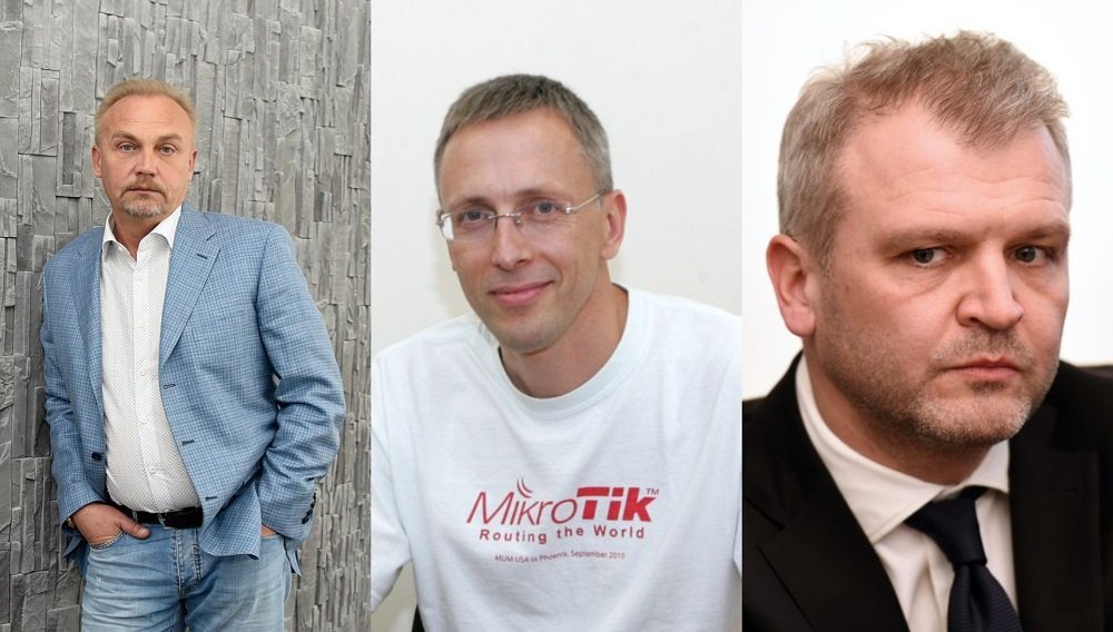 No kreisās: mirušais uzņēmējs Valērijs Maligins, “Mikrotīkls” līdzīpašnieks Arnis Riekstiņš, baņķieris Oļegs Fiļs.