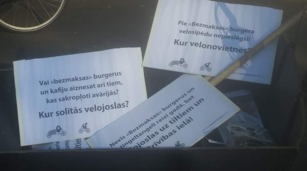 “Izveidotas nav 2014.gadā un 2015.gadā solītās velojoslas Brīvības, Bruņinieku, Sporta, Stabu, Hanzas, Avotu, A.Upīša, Antonijas, E.Melngalvja, Miera un A.Čaka ielās. Tāpat nav nodrošināta solītā infrastruktūra uz pilsētas tiltiem un pārvadiem, nav izbūvēts veloceļš Turgeņeva ielā, veloceļi “Centrs-Ziepniekkalns”, “Imanta-Daugavgrīva” veloceļa posms no Vecmīlgrāvja līdz Vecāķu pludmalei un Dzirnavu ielas velojoslas savienojums ar Skolas ielu,” klāsta piketa organizētāji, piebilstot, ka arī aizmirsti esot citi solījumi.