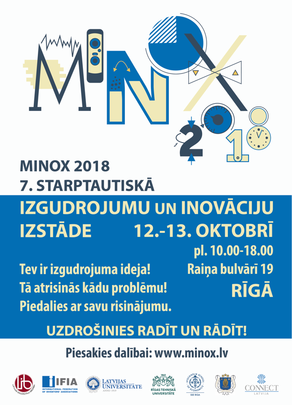 Lai veicinātu izgudrojumu un inovāciju attīstību, kā arī iedrošinātu sabiedrību tehniskajā jaunradē, Latvijas Izgudrotāju biedrība, Latvijas Zinātņu akadēmija un biedrība “CONNECT Latvija” aicina ikvienu apmeklēt 7. Starptautisko Izgudrojumu un inovāciju izstādi MINOX 2018, kura piektdien un sestdien, 12.-13. oktobrī, norisināsies Latvijas Universitātes Lielajā aulā, Raiņa bulvārī 19.