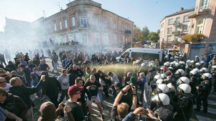 Polijas policijai sestdien Ļubļinā bija jāpielieto asaru gāze un ūdensmetējs, lai pasargātu geju tiesību aizstāvju gājiena jeb tā dēvētā praida dalībniekus no labējo ekstrēmistu uzbrukuma.
