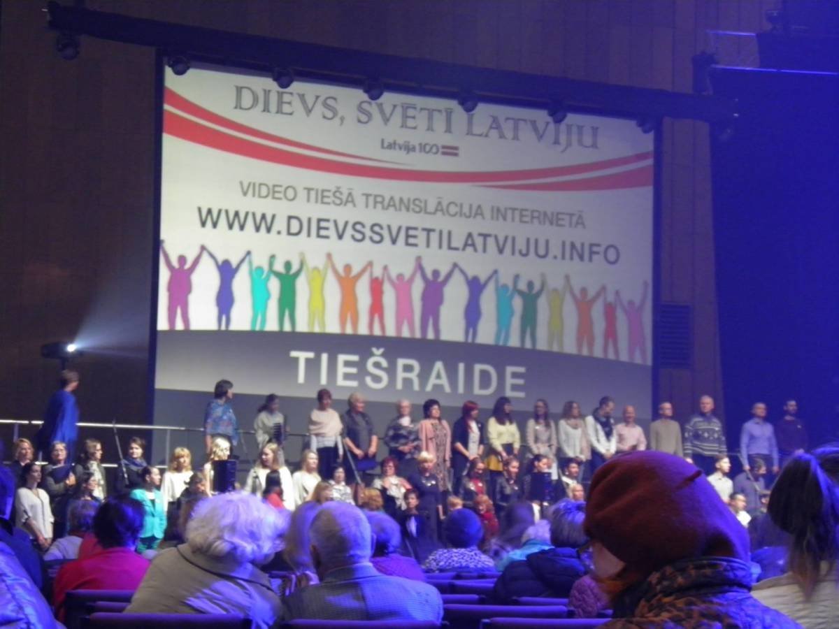 2018.gada 20. oktobrī piedalījos pasākumā “DIEVS SVĒTĪ LATVIJU”, kas notika Skonto hallē. Pirmajās 4 rindās sēdēja 78 mācītāji. Uzzināju, ka Latvijā pavisam ir 400 reliģiskās draudzes. Ilgi pasākumā nevarēju atrasties, jo ļoti skaļā mūzika un grandiozais lāzera starojums man nelikās patīkams. Cilvēki pūlis cēla rokas augšā un bļāva kā tādā hitleriskā saietā. Es sapratu, ka virsroku ņēma reliģiskās sektu “PRIEKA VĒSTS”, “JAUNĀ PAAUDZE” un “VASARAS SVĒTKI” iestrādātais stils. Pēc ticības šova sanākušo tūkstošu publikai bija dots uzdevums ziedot naudu pa riņķi padotos spainīšos, kuru satura pildījumu uzraudzīja labi ģērbti un kopti vīri uzvalkos un šlipsēs.