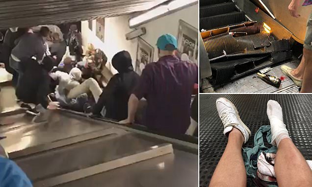Romas mērs Virdžīnija Radži paziņoja reportieriem notikuma vietā, ka saskaņā ar aculiecinieku teikto Krievijas futbola komandas Maskavas CSKA fani “lēkāja un dejoja” uz eskalatora, līdz tas sabruka.